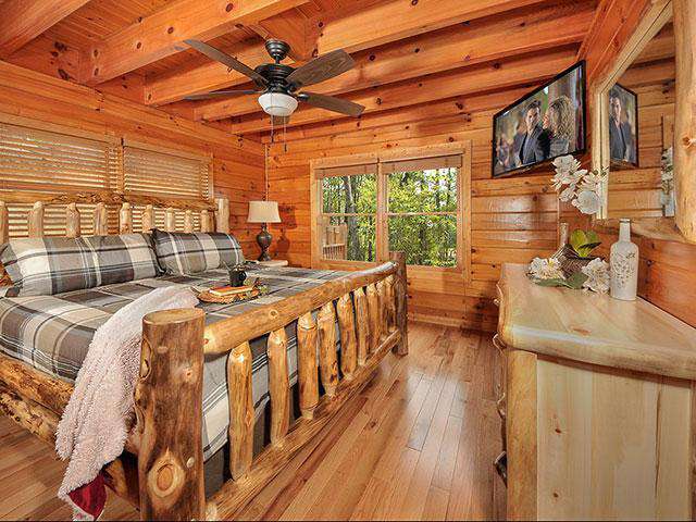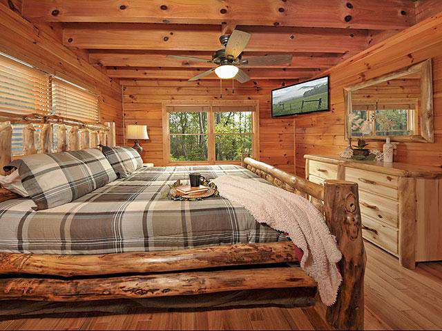 - ALL ADVERTISED "2 BEDROOM CABINS" features an enclosed (PRIVATE) bedroom on the main floor and an open loft (NOT PRIVATE) second bedroom upstairs sharing the floor with the game area. In other words, the king bed located in the open loft floor is considered the "second bedroom"; please understand, one out of the two bedrooms in this cabin does not contain a door that allows for any privacy from the rest of the floor.