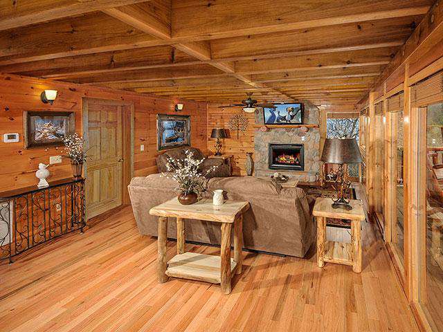 - Offers a gas fireplace that is for ambiance purposes only. This fireplace is not advertised as a heating source for the cabin.